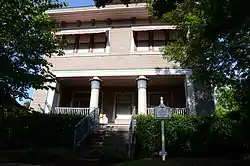 The Fordyce House is a historic house at 2115 South Broadway in Little Rock, Arkansas. Built in 1904 to a design by noted Arkansas architect Charles L. Thompson, it is believed to be the state's only example of Egyptian Revival residential design. It is two stories in height, with narrow clapboard trim. A recessed porch shelters the main entrance, with the stairs leading up to flanked at the top by two heavy Egyptian columns. The second floor windows are banded in groups of three and the roof has a deep cornice with curved brackets. John Fordyce, for whom it was built, was a prominent businessman and engineer who held numerous patents related to cotton-processing machinery.[2]