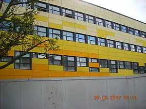 In 2006 the school's new £4.5M state-of-the-art sports facility was opened with lottery funding and help with Sport England and The FA Charter Standard Schools Program.[19] The facility features a large air conditioned sports hall with basketball nets, indoor cricket, indoor football markings and goals and a scoreboard. The other part of the gym includes a fitness suite, cafè, space for trampolining and table tennis, new changing room facilities with showers and also two of the old three gyms. The sports centre opened on top of Gym 3, but was also expanded towards Bampton Road on the other side of the school.