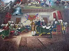 • The Court of Liberty features statues of George Washington and Thomas Jefferson and the Birth of Liberty mosaic. At 162 feet (49 m) long and 28 feet (8.5 m) high, Birth of Liberty is the largest historical mosaic in the United States. It is composed of ten million pieces of Venetian glass and depicts twenty-five scenes from early America, from 1619 to 1787.
