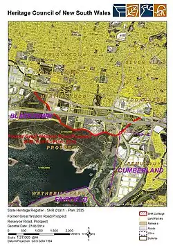 - "Former Great Western Road, Prospect". New South Wales State Heritage Register. Department of Planning & Environment. H01911. Retrieved 2 June 2018.