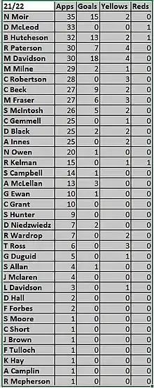 Finishing second in the league behind Buckie Rovers they also won the Cup double defeating Buckie Rovers on both occasions. In both Cup Finals centre half Chris Ross was sent off for two bookable offences.