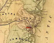 (The 1864 map locates it closer to 31.47166°N 81.61026°W / 31.47166; -81.61026.)