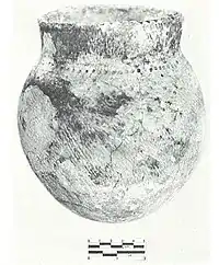 There was also a fair amount of Early Woodland Marion thick ware present; representing a possible occupation prior to the Wayne and Western Basin traditions, or indicating Early Woodland roots for either (or both) of the Late Woodland traditions.[1][6]