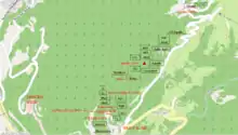 Fort de Dailly is one of the largest and most heavily armed forts in Switzerland, and the central position in Fortress Saint-Maurice.[6] The artillery fort is located on the end of the Dailly massif at a higher level than Savatan, with fields of fire to the north, west and south. The fort therefore is capable of firing on an enemy advancing southeast into the heart of the Alpine redoubt from the direction of Lac Léman, or northwest from the Great Saint Bernard or Simplon passes.[7] Work began at Dailly in 1892.[8] The entrance to the underground fort lies at an elevation of 1,400 metres (4,600 ft) at the end of 29 switchbacks. The fort initially was armed with six 120mm gun turrets with additional open artillery positions, including six additional 120mm guns on rail-mobile disappearing mounts.[9] Two 75mm guns were mounted in casemates, while portable 53mm gun turrets occupied prepared surface positions.[10] Dailly was upgraded with 105mm artillery during the 1940s, with as many as ten 105mm guns in casemate positions. Flanking coverage from across the valley was provided by the Fort du Scex.[8]