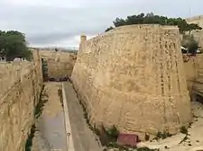 In 2008, restoration began in Mdina, Birgu and the Cittadella.[78][79][80] In Mdina, some of the bastions had started to slip down the clay slopes, and steel rods were inserted in the walls to reinforce them.[81] Throughout the course of restoration, a number of archaeological remains have been found, including remains of Mdina's Punic-Roman and medieval walls,[8] a bastion and a caponier in Birgu,[82] the Cittadella's original entrance, and a number of other features.[83]