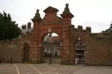 The original square house was not altered much in the 17th century other than a small extension to the north-west in 1636.[5] In 1640 Rainton was imprisoned for refusing to help Charles I raise a loan. He died in 1646 aged 77 and was buried at St Andrew's Church in Enfield.[1] The hall then passed to his great-nephew, also Nicholas. He was able to extend the estate northwards by buying and demolishing the neighbouring Elsyng Palace in 1656. In 1696 the hall passed to John Wolstenholme (probably a descendant of the financier and merchant of the same name and member of the Virginia Company), who carried out major refurbishment possibly following a fire, including construction of an extension to the south-west, and planted the avenue. In 1740 the house passed to Eliab Breton, who remodelled the ground floor. Later owners included Edmund Armstrong (1787) and James Meyer (1799), whose family built the nearby Jesus Church in 1835. In 1894 the hall was bought by Henry Carrington Bowles[5] of the neighbouring Myddelton House for his son Major Henry Ferryman Bowles (1858–1943), MP for Enfield and later 1st Baronet Bowles.[6] In 1897 there were further changes including enlargement of the south-west wing. In 1951 the Bowles family sold it to the Municipal Borough of Enfield, the predecessor of the London Borough of Enfield. It has since been used as a museum.