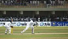 Played to a good length ball, the batsman attempts to defend his wicket by smothering the ball before it has an opportunity to spin or move off the seam. With a well-bent front knee, the shot can also help combat variable bounce.