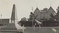 The first stone of the monument was set on the city foundation date, September 12, 1904 to celebrate its designation as the National Territory capital, replacing Chos Malal, which had been from 1887 to the date. The construction, made out of bricks and cement, was finished in October of the same year through the law 4523 from the national executive branch.[3] It was originally located next to the "Chateau Gris", which was a two-storey wooden building in swiss style, which served as the town hall and National Territory administration building.[4][5]