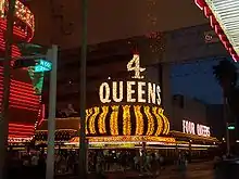 The Four Queens Hotel and Casino is located in downtown Las Vegas on the Fremont Street Experience. The 690-room hotel and 27,269 sq ft (2,533.4 m2) casino is owned and operated by TLC Casino Enterprises, which acquired the property from the Elsinore Corporation in 2003.[1]