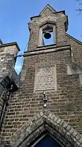 "...a 19th brick building with three gables of varying width. A recessed entrance has a pointed arched doorway with a bell tower."