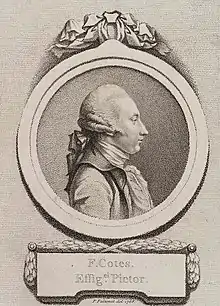 Francis Cotes RA (20 May 1726 – 16 July 1770) was an English painter, one of the pioneers of English pastel painting, and a founding member of the Royal Academy in 1768.