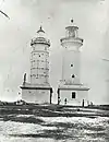 - The Greenway lighthouse was replaced by the James Barnet lighthouse in 1878. The former lighthouse was demolished and the latter lighthouse remains in use. The image shows the two lighthouses, side by side, in the 1880s. The Green lighthouse is on the left.[19]