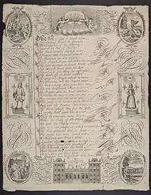 Francis Quarles was born in Romford, Essex, and baptised there on 8 May 1592. His family had a long history of royal service. His great-grandfather, George Quarles, was Auditor to King Henry VIII, and his father, James Quarles, was Clerk of the Green Cloth, and Purveyor of the Navy, in Queen Elizabeth's reign. His mother, Joan Dalton, was the daughter and heiress of Eldred Dalton of Mores Place, Hadham. Francis grew up in the Manor of Stewards.[1][2] There were eight children in the family; the eldest, Sir Robert Quarles, was knighted by James I in 1608.[3]
