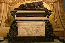 In Lima, on 26 June 1541 "a group of 20 heavily armed supporters of Diego de Almagro II "el mozo" stormed Pizarro's palace, assassinating him and then forcing the terrified city council to appoint young Almagro as the new governor of Peru".[16] "Most of Pizarro's guests fled, but a few fought the intruders, numbered variously between seven and 25. While Pizarro struggled to buckle on his breastplate, his defenders, including his half-brother Martín de Alcántara, were killed".[10]: 143 For his part, Pizarro killed two attackers and ran through a third. A contemporary chronicler, Agustín de Zárate, wrote that Pizarro fought until "he was too exhausted to brandish his sword" and then was struck fatally in the throat. When he fell to the ground he reportedly drew a cross on the floor with his blood and kissed it before dying.[17] A modern forensic examination of his remains indicated that Pizarro had been savagely attacked with multiple stab wounds to his head and neck as well as defensive wounds to his hands and arms.[18]