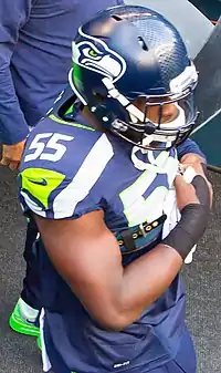 Frank Dominick Clark (born June 14, 1993), nicknamed "the Shark", is an American football defensive end for the Seattle Seahawks of the National Football League. He played college football at Michigan. As a junior, he was a 2013 All-Big Ten second-team selection by the coaches and honorable mention selection by the media for the 2013 team. Clark was drafted by the Seahawks in the second round of the 2015 NFL Draft.