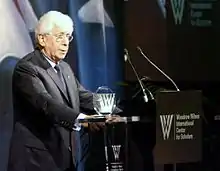 In 2000, he was appointed a Companion of the Order of Australia for his service to the community through the development of the property industry and expansion of the retail sector in Australia and internationally, and as philanthropist committed to support of wide-ranging social and cultural endeavours.[83] In 2002, he received the Golden Plate Award of the American Academy of Achievement presented by Awards Council member Ehud Barak in Dublin, Ireland.[84] The establishment of the Lowy Institute led him to being awarded the Woodrow Wilson Award for Corporate Citizenship in 2005 by the Woodrow Wilson International Center for Scholars.[85] On 2 October 2007 Lowy received the Henni Friedlander Award for the Common Good at Bowdoin College in Brunswick, Maine, United States.[86] In 2008 Lowy was honoured by Australia Post for his contribution to philanthropy as one of the nation's five leading, living philanthropists with a commemorative postage stamp that was released on the eve of Australia Day as part of the Australian Legends series.[87]