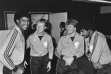 Rijkaard comes from a football-playing family. He is the son of Herman Rijkaard, a former footballer who played for SV Robinhood in the Surinamese Hoofdklasse, before emigrating to the Netherlands, where he played in the Dutch Eredivisie for FC Blauw-Wit.[6] His older brother, Herman Rijkaard, Jr., is a FIFA certified players' agent who represents various players internationally.[26] Twice divorced, he is currently married to Stephanie and has four children.[27][28][29]