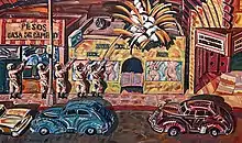 Frank Edward Romero (born July 11, 1941) is an American artist considered to be a pioneer in the Chicano art movement.[3][4][5] Romero's paintings and mural works explore Chicano and Los Angeles iconography, often featuring palm trees and bright colors.