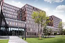 In the winter semester of 2017/18, Frankfurt School moved to a new campus on Adickesallee in the Nordend district of Frankfurt. Constructed between 2014 and 2017, the new building stands on the site of Frankfurt’s old regional tax office.[5]