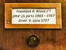 František R. Kraus (גדעון בן יצחק קראוס Gideon ben Yitzhak with his Hebrew name) (October 14, 1903, Prague - May 19, 1967, Prague) was a Czechoslovak Jewish anti-fascist writer, journalist and editor, member of the resistance movement, sportsman and a known Czech holocaust survivor.