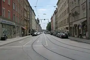 The Fraunhoferstraße is a city center street in Munich. It is located in the district of Isarvorstadt and separates the Gärtnerplatzviertel in the north from the Glockenbachviertel in the south.
