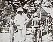 After World War I and until his death, Burlingham continued to re-edit and release in the United States his past films like The Ascent of the Matterhorn, Mont Blanc, and Descent into the Crater of Vesuvius. He also traveled to new destinations to shoot footage for fresh releases. From late 1919 through 1920, he ventured to Southeast Asia to explore and film the landscapes and native peoples of that region, including the Dayak culture of Borneo and areas in that island's interior "never explored before" or documented by Westerners.[13][14] Burlingham was back in the United States by 1921. Later that year he began releasing bi-monthly through Truart Film Corporation installments of a series of 26 one-reel "Burlingham Adventures" produced from his most recent travels, beginning with The Wild Men of Borneo, The Lure of the South Seas, The Island of Surprise, A Borneo Venice, and Monkey Land Up the Barito River.[15] Before and after his trip to Borneo, he also filmed excursions to various locales in the United States and Canada, to sites such as Niagara Falls and the Suwannee River that runs from southern Georgia into Florida.[13] Burlingham during the last three years of his life continued to produce and release more travelogues from his large film collection, presented lectures about his expeditions, worked on a book about Borneo, and wrote articles for The National Geographic and other science and film publications.[16][17]