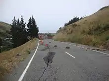 Evans Pass Road below Evans Pass, with damage from the 2011 Christchurch earthquake