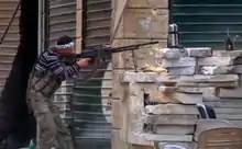 The Free Syrian Army on the local level engages and ambushes the state's shabiha militia[152] and confronts the army during which it encourages defections.[213] Some members of the Free Syrian Army have stated that the organization does not have the resources to occupy and take control of territories, and instead relies primarily on hit and run attacks to prompt the Syrian army into withdrawing.[214] The FSA also uses improvised explosive devices to attack military convoys of buses, trucks and tanks that are transporting supplies and security reinforcements and engages in attack and retreat operations on government checkpoints.[152][215] In neighborhoods opposed to the government, the FSA has acted as a defense force, guarding streets while protests take place and attacking the militias, known as shabiha, which are an integral part of the government's efforts to suppress dissent.[216] In Deir ez-Zor, Al-Rastan, Abu Kamal and other cities the Free Syrian Army, however, engaged in street battles that raged for days with no particular side gaining the advantage.[152] The FSA has also sought international help in bringing down the Assad government. It has asked the international community for arms and the implementation of a no fly zone and naval blockade of Syria[217]