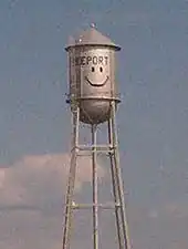 Freeport's water tower greets travelers along Interstate 94 with a smiley face