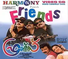 Friends is a 1999 Indian Malayalam-language buddy comedy-drama film written and directed by Siddique, produced by Lal and starring Jayaram, Mukesh, and Sreenivasan with Meena, Divya Unni, Jagathy Sreekumar, V. K. Sreeraman, Janardhanan and Cochin Haneefa in supporting roles. It was the highest-grossing Malayalam film of the year, grossing around ₹11 crore at the box office against a budget of ₹ 2 crore.[1] It was later remade into Tamil with the same name (2001) and into Telugu as Snehamante Idera (2001) and Odia as Dosti.[2]