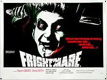 Frightmare (also known as Cover Up and Once Upon a Frightmare) is a 1974 British horror slasher film directed and produced by Pete Walker, written by David McGillivray and starring Rupert Davies and Sheila Keith.[1] The story focuses around Dorothy and Edmund Yates, who have recently been released from a mental asylum, and is one of Pete Walker's most notable films.[2][3]