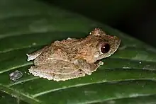 The frilled tree frog, rough-armed tree frog, or Southeast Asian tree frog (Kurixalus appendiculatus) is a species of frog in the family Rhacophoridae found in Brunei, Cambodia, India, Indonesia, Malaysia, Myanmar, the Philippines, Thailand, and Vietnam.[2] Its natural habitats are subtropical or tropical moist lowland forest, subtropical or tropical swamps, subtropical or tropical moist shrubland, rivers, swamps, freshwater marshes, and intermittent freshwater marshes. It is threatened by habitat loss.[1]