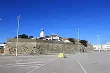 In 1810 most of Spanish fortifications around the Bay of Gibraltar were demolished by the British in 1810, during the Peninsular War, to stop them falling into French hands.[1] However, the fort at Isla Verde was not affected and underwent remodelling and reinforcement on several occasions during the 19th century. By 1821 the number of batteries had been increased to five. A number of firing positions were added to facilitate the use of muskets from the fortress walls and the batteries were paved with flagstones to make it easier to move the gun carriages around.[2] But, during the course of the century the fort gradually fell into ruin. Deficiencies in its construction and erosion caused by the sea caused the structure to deteriorate, and in 1863 the Faro de Isla Verde (English: Green Island Lighthouse) was built on top of the old San García Battery.[1]