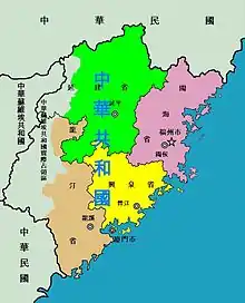 ![]() The province of Fujian within the Guomindang Republic of China, where the government was based | |||||||||