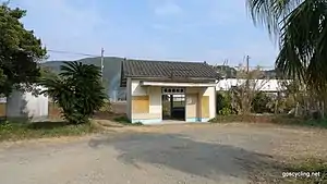 The station consists of a side platform serving a single track at grade. The station building is a simple wooden structure with a tiled roof. It is unstaffed and serves only as a waiting room. After the ticket gate, short flight of steps leads up to the platform.[2][3][4]