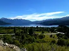 Futalaufquen Lake (Lago Futalaufquen) is a large lake in Chubut Province, Argentina. Futalaufquen Lake is in the chain of lakes of the Futaleufú River system of Argentina which via Yelcho Lake and the Yelcho River flows into the Pacific Ocean in Chile. Located in the Andes, Lake Futalaufquen is three-lobed, of glacial origin, and occupies narrow valleys between glaciated peaks. It is located in the Andes within Los Alerces National Park. The name comes from the Mapuche language. "Futa" means great, and "laufquen" means lake.