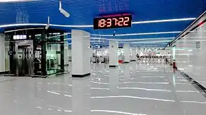 Fuzhou South Railway Station (Chinese: 福州火车南站站; pinyin: Fúzhōu Huǒchē Nánzhàn zhàn; Fuzhounese: [huʔ˨˩ t͡siu˥˥ huoi˨˩ ʒia˥˥ nɑŋ˨˩ ʒiɑŋ˨˦˨]) is a metro station of Line 1 of the Fuzhou Metro. It is located on Lulei Road at the underground of CR railway station in Cangshan District, Fuzhou, Fujian, China.[5] This station started operation on May 18, 2016.[6]