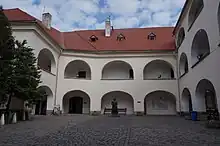 In 1392 he disobeyed Vytautas the Great and was forced into exile. In 1396, Koriatovych purchased the city of Munkács in the Kingdom of Hungary (today Mukachevo, Ukraine), settling himself in the city's Palanok Castle, which would become one of the most protected castles in the region.