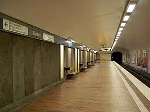 Gärdet Metro Station is a station on the red line of the Stockholm metro, located in the district of Ladugårdsgärdet. The station was opened on 2 September 1967 as part of the extension from Östermalmstorg to Ropsten.[2]