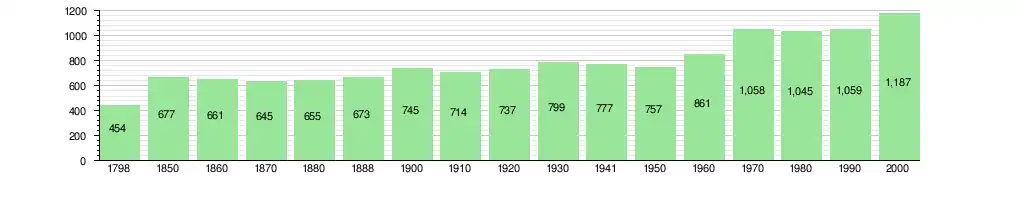 As of 2000, there were 470 private households in the municipality, and an average of 2.4 persons per household.[8] There were 106 households that consist of only one person and 27 households with five or more people. Out of a total of 476 households that answered this question, 22.3% were households made up of just one person and there were 7 adults who lived with their parents. Of the rest of the households, there are 173 married couples without children, 153 married couples with children There were 27 single parents with a child or children. There were 4 households that were made up of unrelated people and 6 households that were made up of some sort of institution or another collective housing.[9]