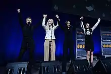 On September 5, 2014, Battle was found dead in her West Hollywood home.[3][4] Los Angeles County Coroner's Lieutenant Fred Corral ruled the death a suicide, following an autopsy.[5] After releasing a preview of the song in December, "Lighthouse" was confirmed as the group's next promotional single in January 2015, the first since Battle's death. The single cover was released on January 13, with the music video following two days later, on January 15.[6] "Lighthouse" peaked at number 18 in New Zealand, and number 30 in Australia.