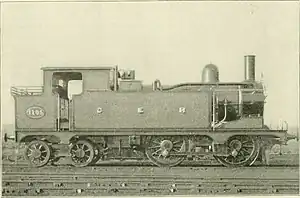 These were the last 0-4-4T locomotives built for the Great Eastern Railway,[1] a type which, as side tanks, the GER had pioneered in Britain.[2] The locomotives were all built at Stratford Works and had 17-by-24-inch (432 mm × 610 mm) inside cylinders driving 4-foot-11-inch (1.499 m) wheels.[3]