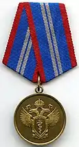 Highest departmental award of the GUSP. Awarded to personnel of the Main Directorate of the GUSP of the Russian Federation and to other persons, who have made a significant contribution to the development and implementation of state policy, regulatory and normative-legal regulation in the sphere of activities of the GUSP, in the development of the GUSP, in the implementation of the powers conferred to the GUSP, who were previously awarded departmental awards of the GUSP: for long-term and effective state civil service; for reasonable initiative, diligence and distinction in the service; for many years of conscientious and impeccable work.[13][20] |