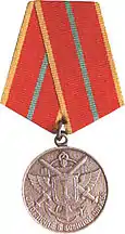 № ? | 1996-05-22 | Awarded to military and civilian personnel of the Russian Federation's Armed Forces, and in some cases – ordinary citizens of Russia or foreign citizens for merits in strengthening the brotherhood of arms and fostering military cooperation with friendly nations; for great personal contribution to strengthening the combat and mobilization readiness of federal bodies of governmental communications and information; for special distinction in exercises, manoeuvres and other services to the Federal Agency for Government Communications and Information.[65] Inscription on reverse "ФАПСИ" (FAPSI). No further award of the medal was made following the July 2003 absorption of FAPSI by the FSB. |