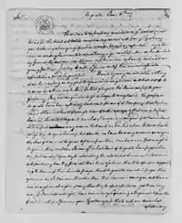 Following his retirement from his position as Clerk of Court for Hampshire County, Jones continued to remain active in Virginia political affairs. In 1784, George Washington visited and dined with Jones at his home at Bogota.[4] In 1788, Jones and his brother-in-law Thomas Lewis were elected to represent Rockingham County at the Virginia Ratifying Convention, where both were fervent proponents for the adoption of the United States Constitution.[2][10][lower-alpha 4] Archibald Stuart of neighboring Augusta County traveled to Rockingham to canvass for Jones prior to the election, and in return, Jones gifted Stuart a chaise to enable Stuart and his wife to return home to Augusta County.[10] Jones was among the first trustees of the Staunton Academy, following its incorporation by an act of the Virginia General Assembly on December 4, 1792.[25]