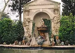 Gala's private castle in Púbol was opened to the public as the Gala Dalí Castle House-Museum in 1996.[2] It allows the visitor to discover a medieval building where Salvador Dalí materialized his creative effort on his wife, Gala Dalí. Currently, it is managed by the Gala-Salvador Dalí Foundation. Inside, it houses the paintings and drawings that Dalí gave for Gala to exhibit at the castle, a collection of haute couture dresses, the furniture and numerous objects that decorated the castle, as well as the mausoleum of Gala. The garden is decorated with sculptures of elephants with long legs (a resource common in the artist's works), and the pool with busts of German composer Richard Wagner. The visitable areas are the Salon of the Shields, the Piano Hall, the Gala Room, the Gala Bath, the Library, the guest room, the attic, the dealer, the dining room, the exit, the tithes with the crypt, the garage, the garden and the pool.[12]