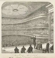 Theatre Royal, Melbourne c. 1873. The gallery is the topmost section of the audience.