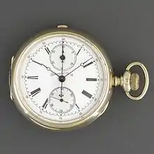 NYCRR Pocket Chronograph (1916)—pocket watch with timer manufactured by Gallet for rail road conductors and engineers of the New York Central Rail Road