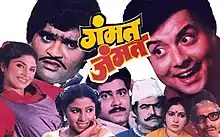Gammat Jammat (transl. Fun And Frotic) is a 1987 Indian Marathi-language comedy-drama film directed by Sachin Pilgaonkar and produced by Satish Kulkarni.[1] It stars Sachin Pilgaonkar, Ashok Saraf and Varsha Usgaonkar in lead roles with Shrikant Moghe, Ashalata Wabgaonkar, Charushila Sable[2] and Sudhir Joshi in supporting roles. The film is about two childhood friends Gautam (Sachin Pilgaonkar) and Phalgun (Ashok Saraf) who kidnap a rich girl Kalpana (Varsha Usgaonkar) in order to extort much money from her wealthy parents.[3]