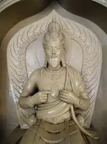 Three years later the congregation began construction of a 10-metre (33 ft) tall Hindu-styled temple (candi), resembling the one at Prambanan Temple;[7][11] Iko set statues of Mary and Jesus as Javanese royalty and teachers, which were adorned with batik motives.[6] Stones were taken from the slopes of Mount Merapi to the north, while the entrance was pointed to southern sea; this orientation reflected a Javanese belief in the harmony between north and south.[12] The temple was consecrated on 11 February 1930 by Bishop of Batavia Antonius van Velsen.[10]